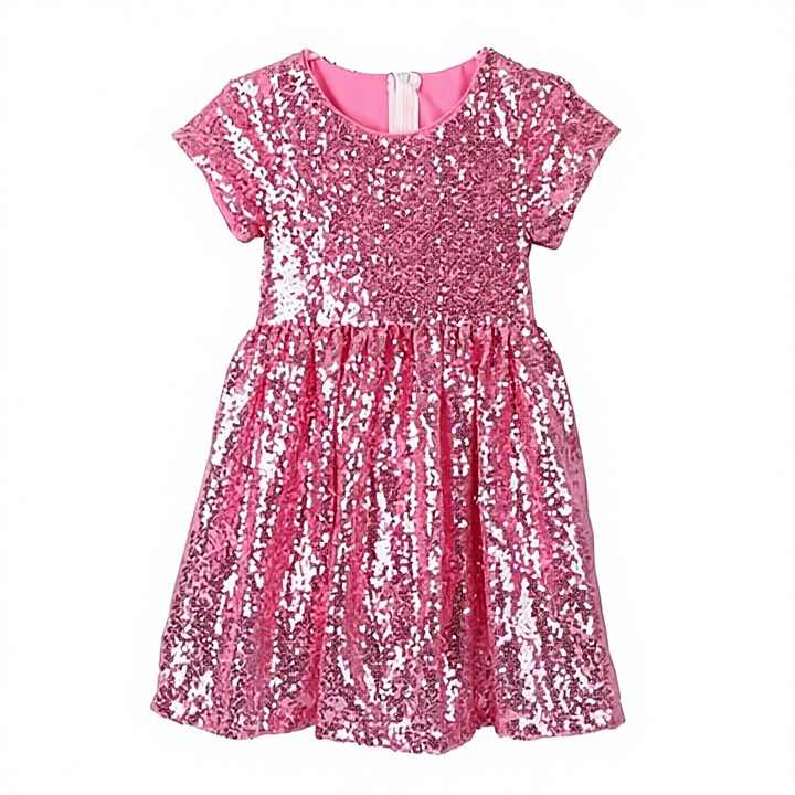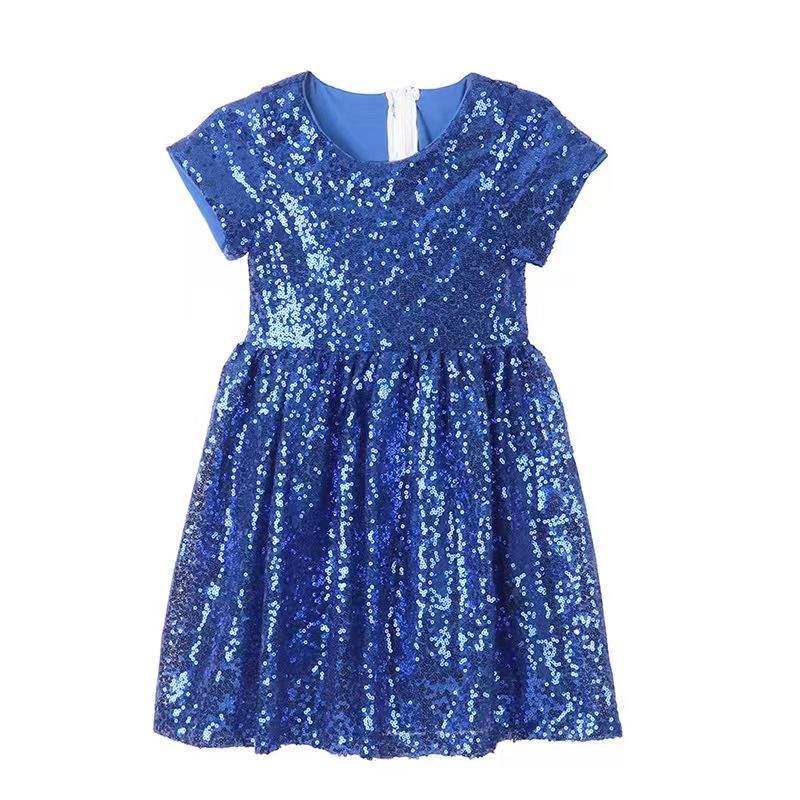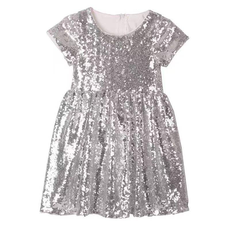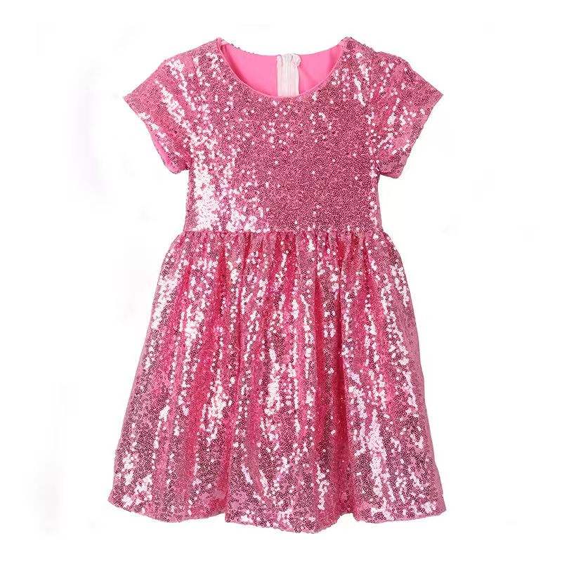 Vestido de Fiesta de Lentejuelas Personalizable para Niñas, Estilo Verano, Cuello Redondo, para Navidad, ODM