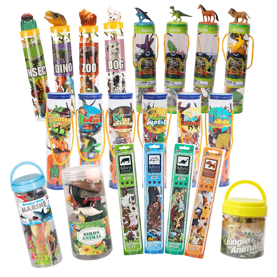 Aceptamos tarjetas blíster personalizadas, tarros de PVC, tubos, paquetes de juguetes de animales en miniatura.