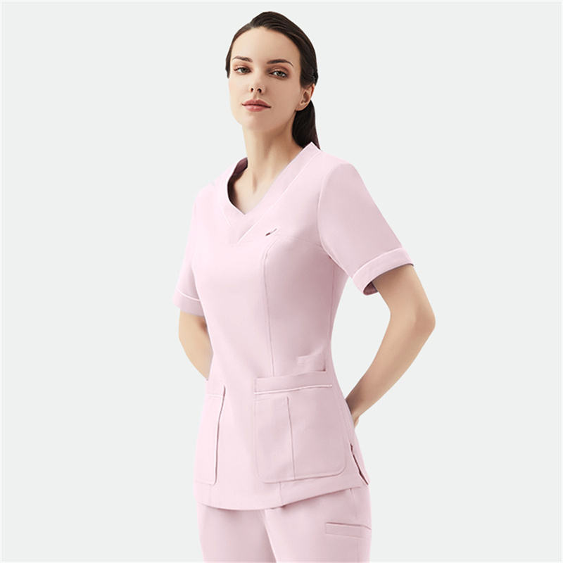 Juego de exfoliante de enfermería personalizable con cuello en V para dentistas, tejido elástico de aspecto limpio, ajuste a medida