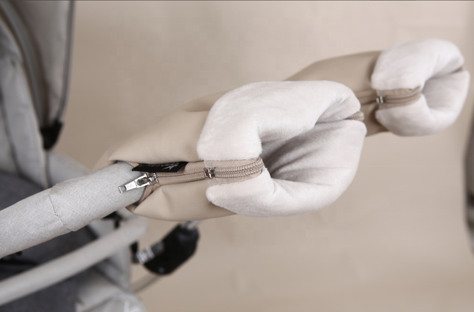 Accesorios cálidos personalizables para cochecito de bebé, calentador de manos, manopla para adultos, guantes universales de PU Beige a prueba de viento