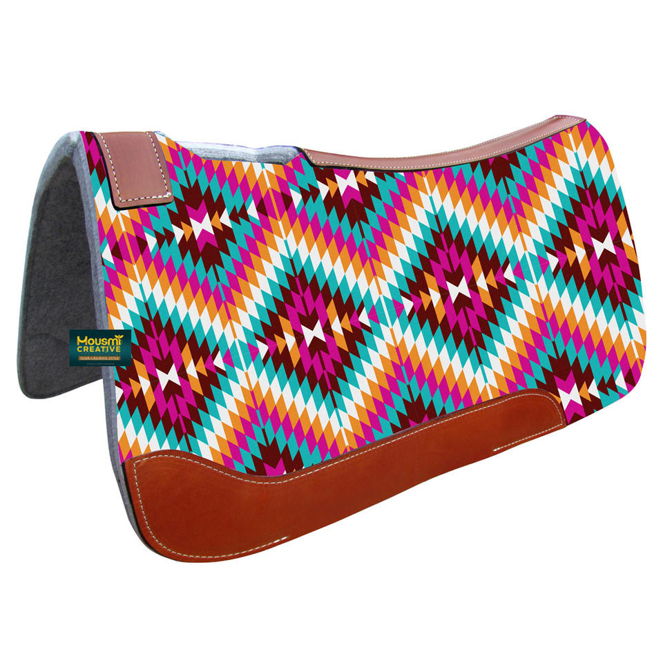 Product Name:Western Horse Printed Felt (Numnah) Contoured Cutback Saddle Pad