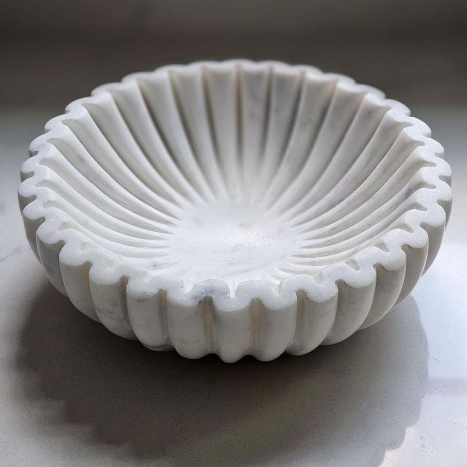 Cuenco de Mármol Blanco Personalizable para Decoración de Mesa de Comedor que Ofrece un Estilo Clásico y Atemporal para Interiores Modernos y Contemporáneos