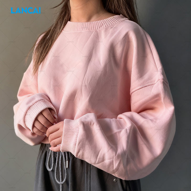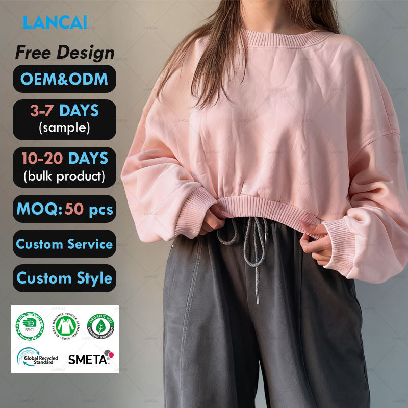 Nombre del producto:Sudadera de cuello redondo recortada de mujer personalizable