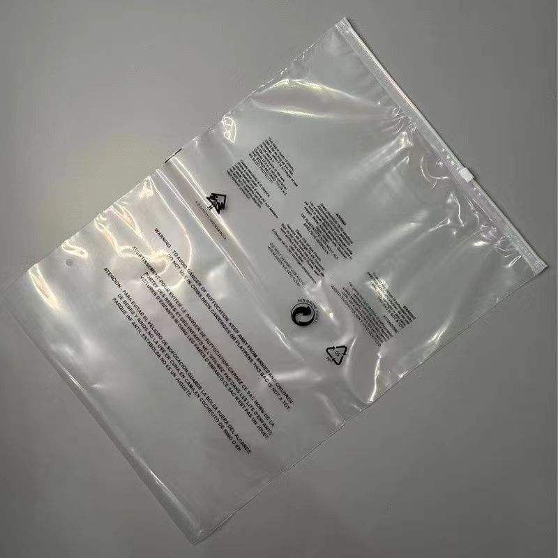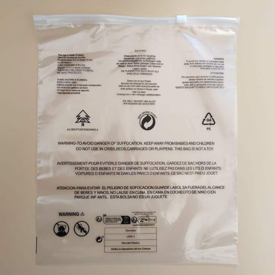 Bolsa de polietileno PE con cierre de cremallera personalizable con advertencia de asfixia, logotipo personalizado reutilizable para prendas, ropa interior, zapatos, embalaje