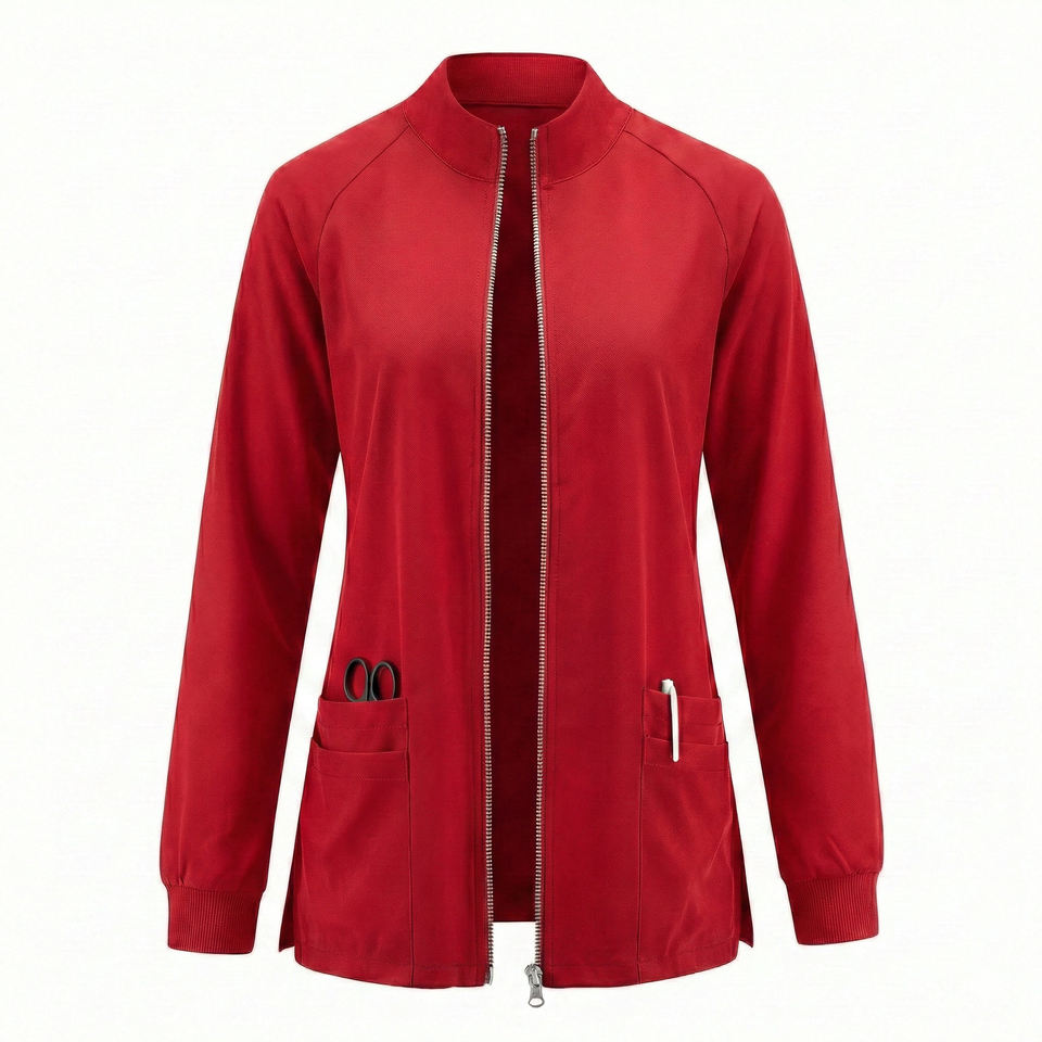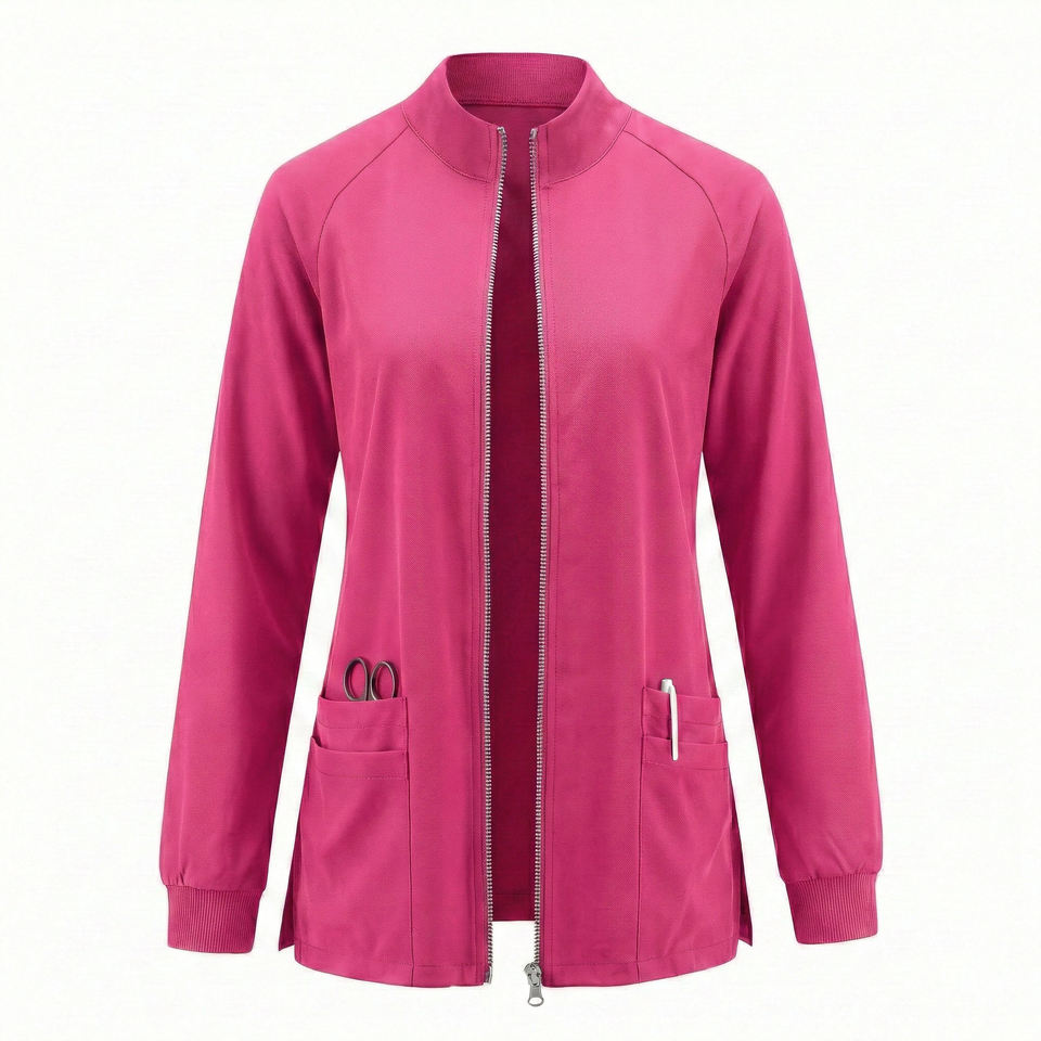 Chaqueta Médica Personalizable con Cremallera para Mujer, Multibolsillos, Ranura para Tijeras y Bolígrafos, Dobladillo Ventilado, Prenda Exterior, Venta al por Mayor de Chaquetas Médicas