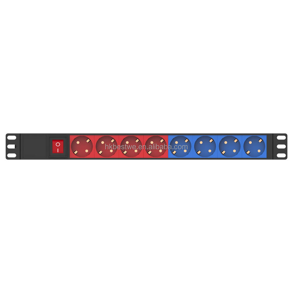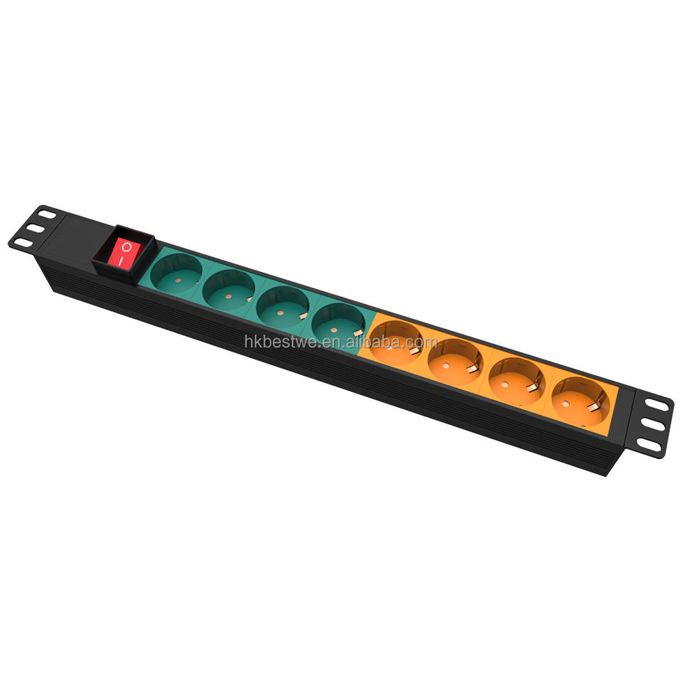 Colores personalizables 1U 8Way Unidad de distribución de energía universal Carcasa de plástico con interruptor de encendido/apagado y enchufe PDU de sobrecarga