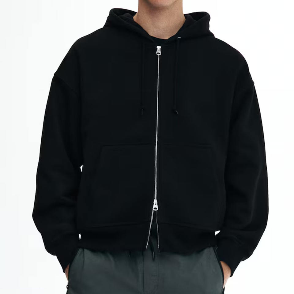 Sudadera con capucha de lana de algodón 100% con cremallera deslizante doble personalizable para hombre, cuello con capucha de invierno pesado con patrón sólido para hombre