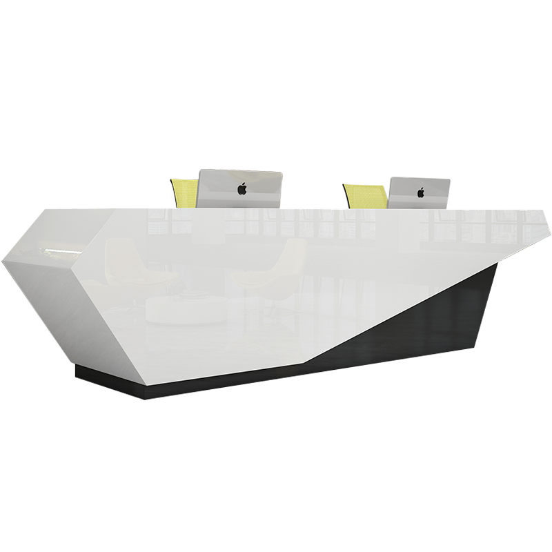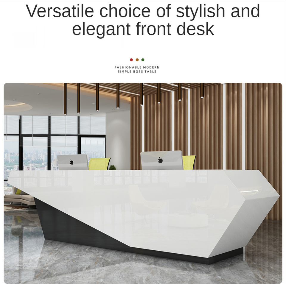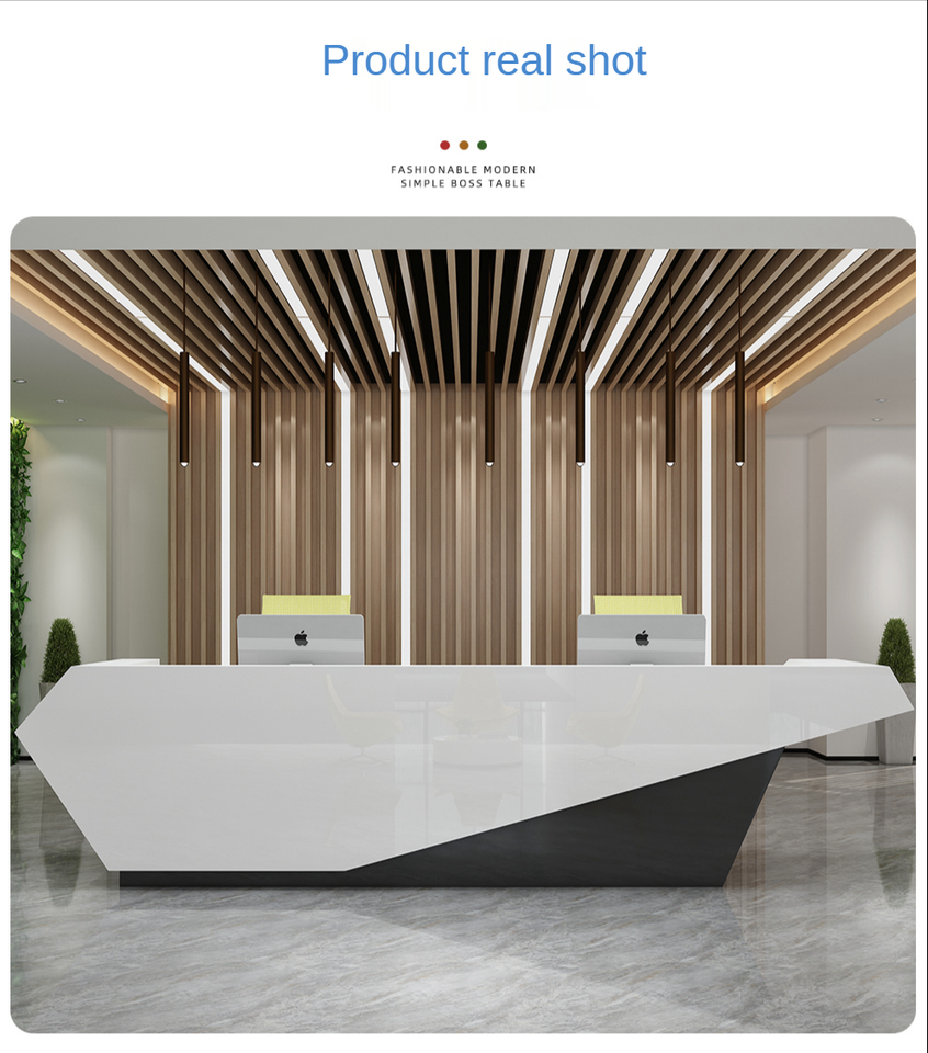 Mostrador de Recepción de Lujo Personalizable con Logotipo para Edificio de Oficinas, Fabricado en Piedra Artificial y Madera