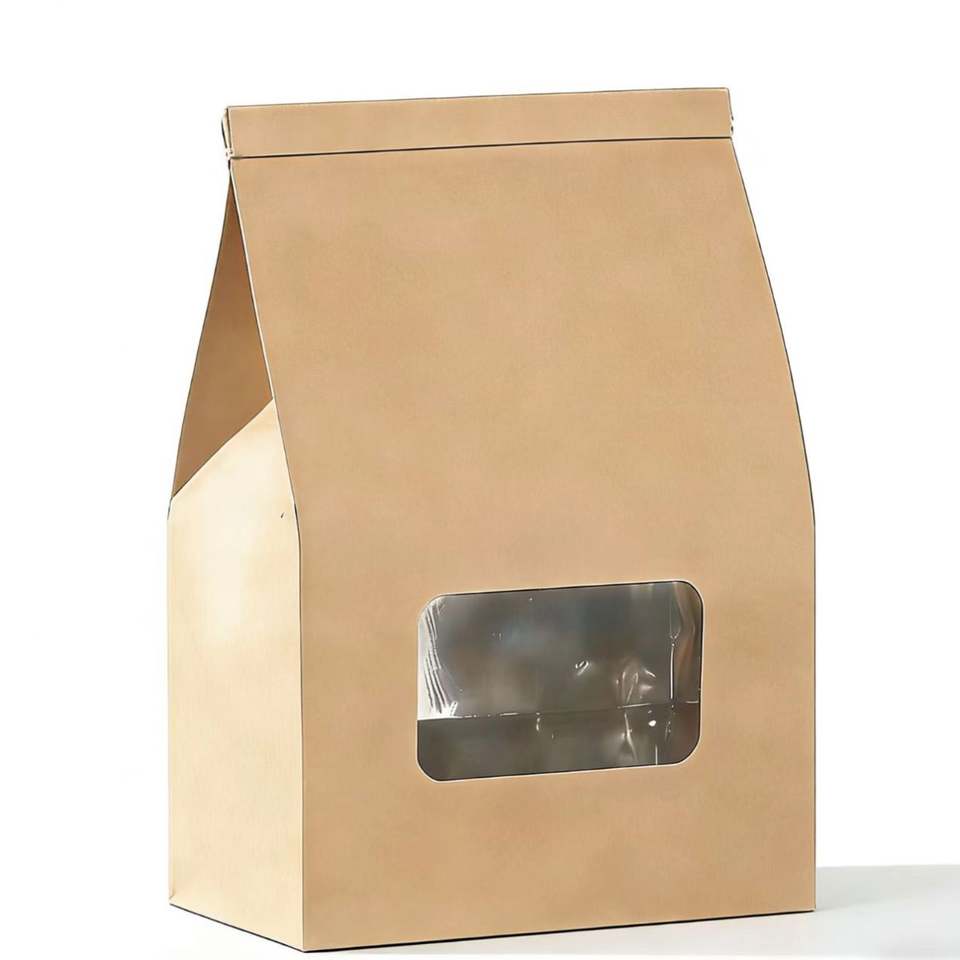 Bolsas de Papel Kraft Biodegradables para Alimentos con Ventana Transparente y Cierre Autoadhesivo, Tamaño y Logotipo Personalizables