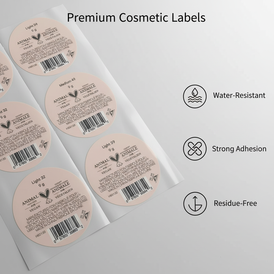 Etiquetas de maquillaje personalizables, etiquetas para envases de cosméticos, impresión en papel sintético con laminado brillante