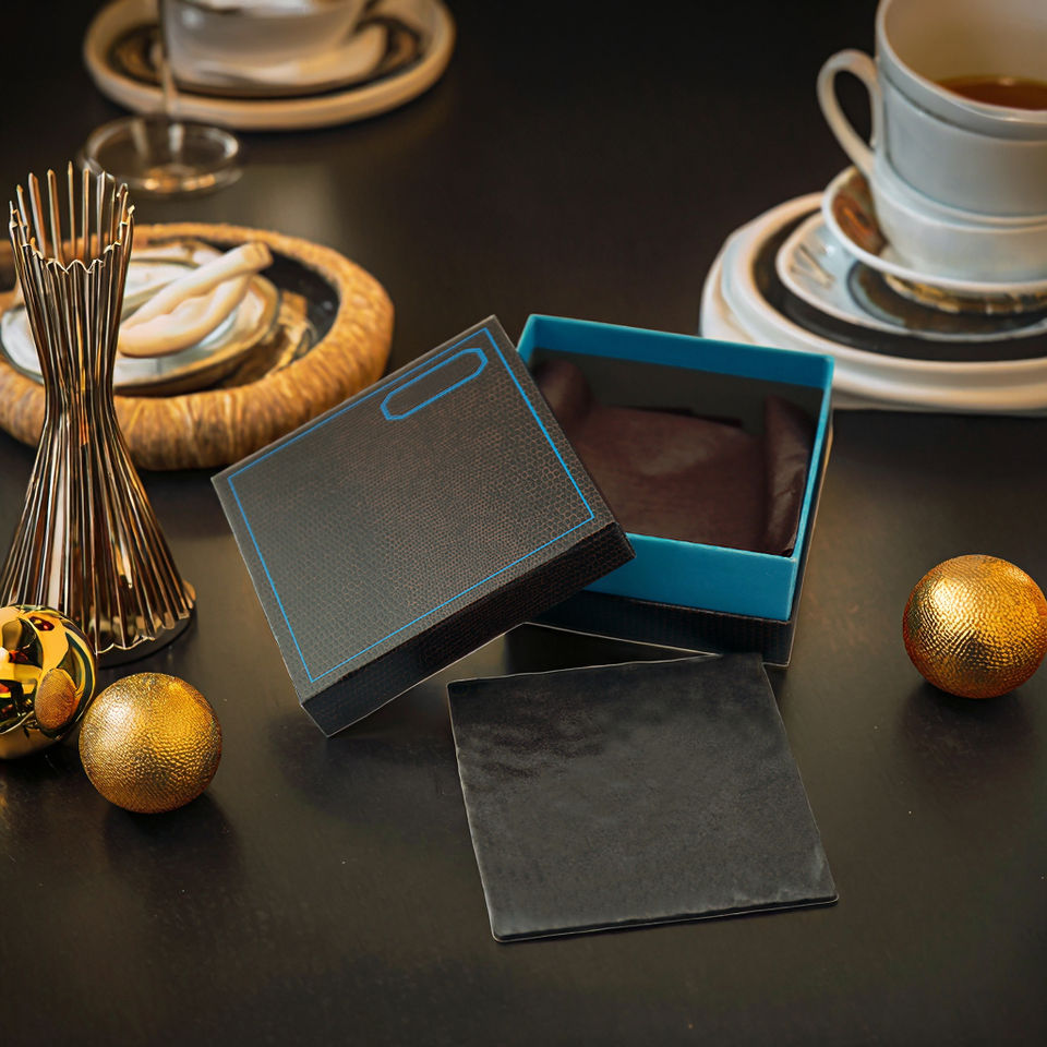 Caja negra con logotipo impreso de tamaño personalizable con textura para embalaje de dulces y chocolate en la industria alimentaria Cajas ranuradas