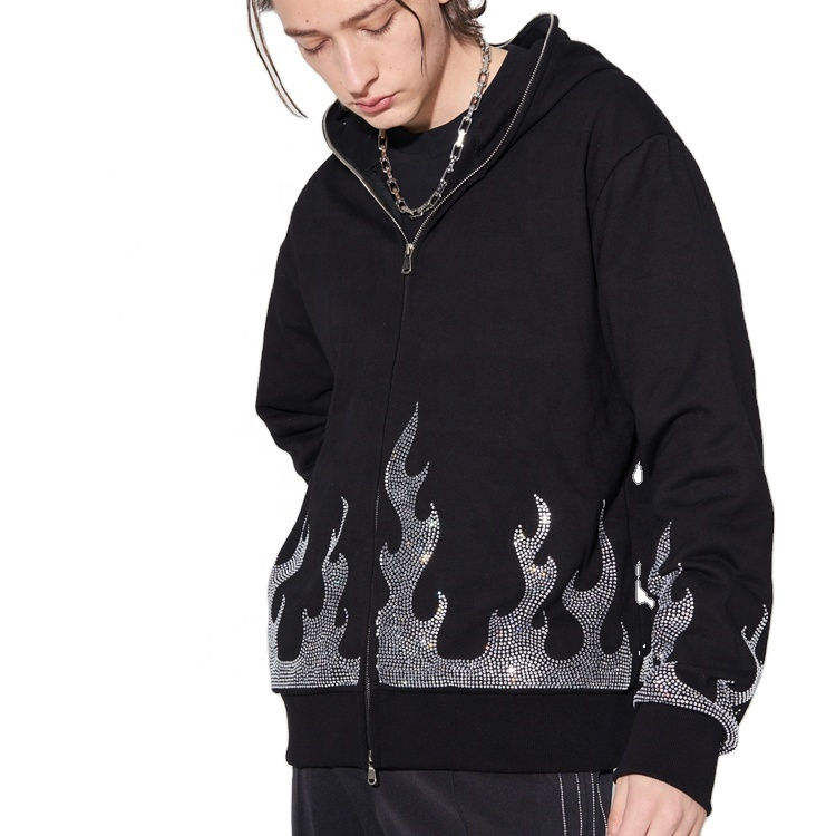 Sudaderas con Capucha Bordadas para Hombre, 100% Algodón, Personalizables, con Logotipo de Letras en Pedrería, Servicio OEM, Impermeables, Transpirables y Ecológicas