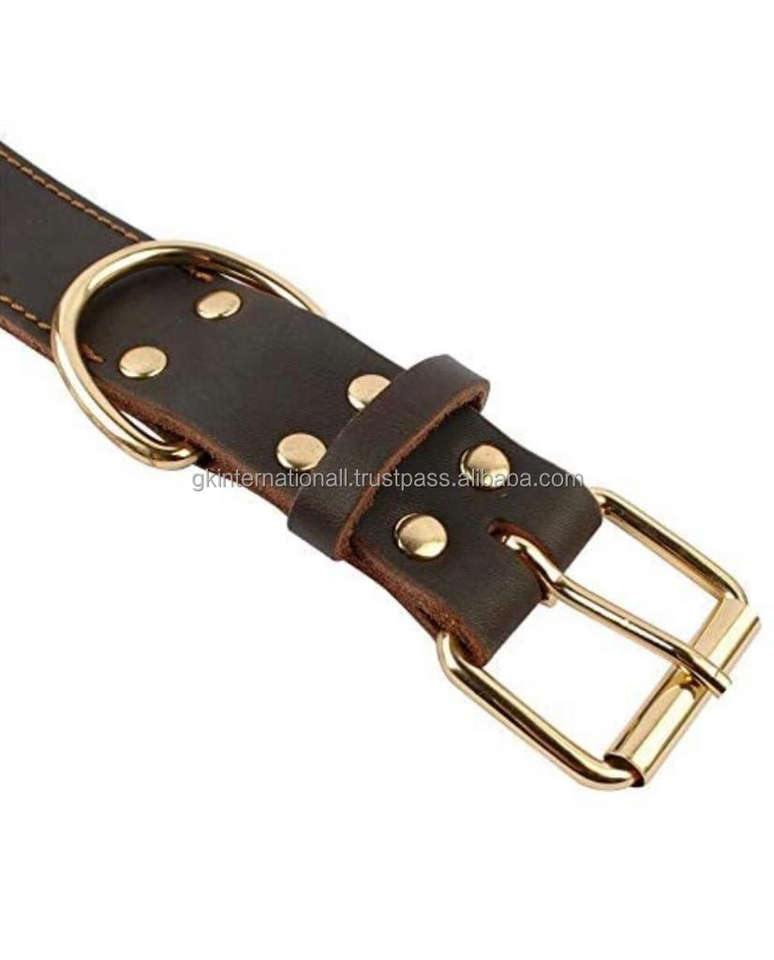 Collar de cuero marrón para perros, accesorio personalizado, suministros para mascotas de la India, de cuero mate, con acabado dorado