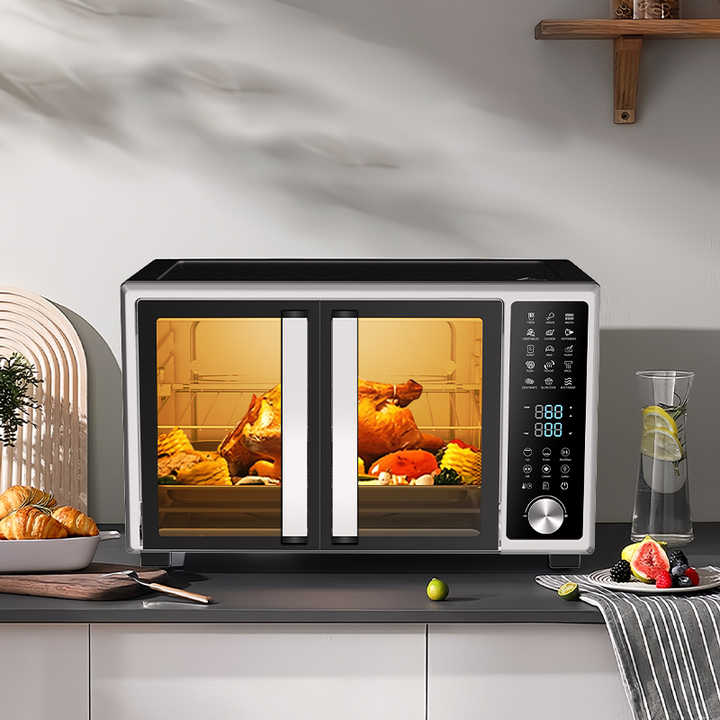 Horno eléctrico de 45 litros con doble puerta francesa personalizada, horno eléctrico Digital para Pizza, horno eléctrico para patatas al horno