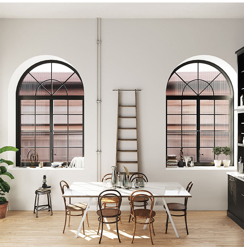 Ventana Arqueada de Aluminio Francesa Personalizable con Rejilla, Apta para Baño y Dormitorio