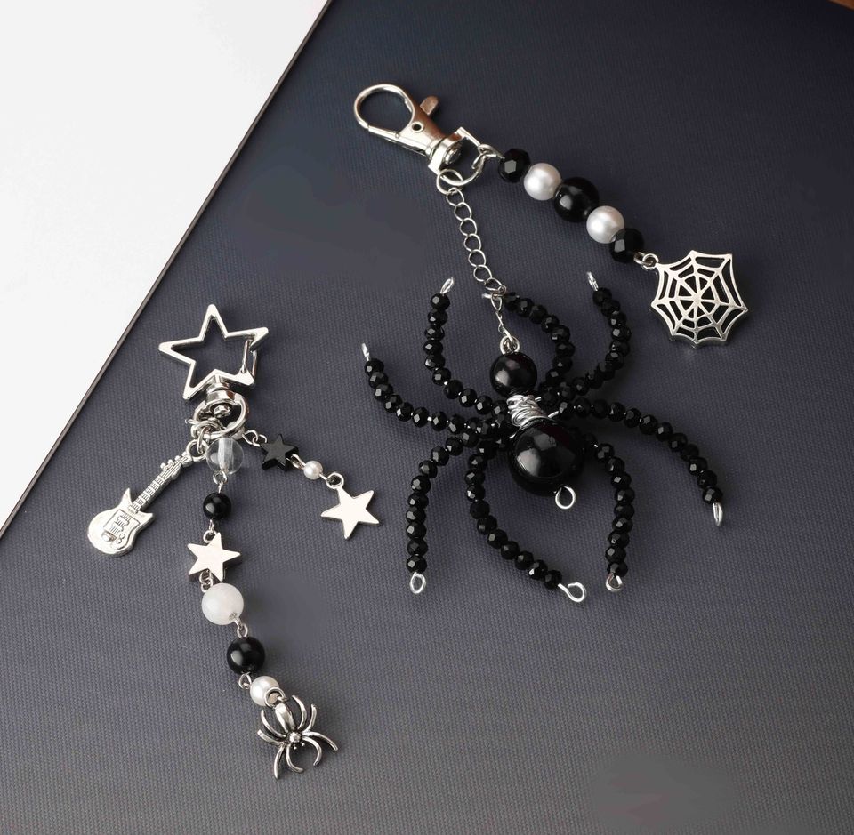 Personalización realista detallada Cadena de cuentas adornado araña Horror colección plata telaraña columpio lindo llaveros bolsa encantos