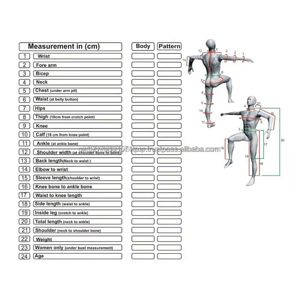 Frente, Espalda, Manga izquierda, Manga derecha, Dobladillo inferior, Cuello trasero