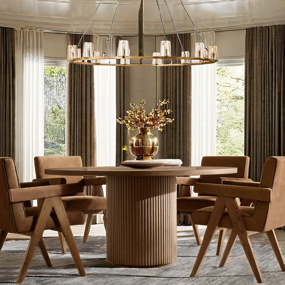 Personalización — juego de lujo: mesa de comedor redonda de roble macizo con 4 sillas, conjunto de muebles de comedor de madera