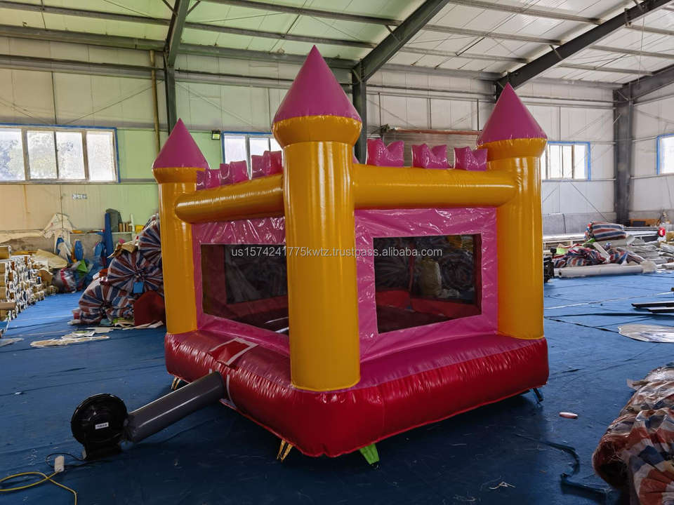 Casa de rebote inflable rosa de PVC personalizada con castillo hinchable tipo deslizador largo para saltar y rebotar logotipo divertido gratis