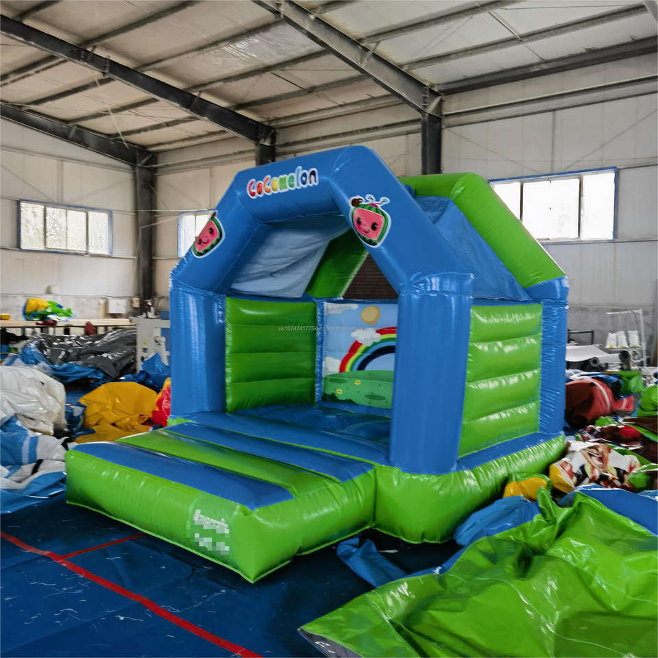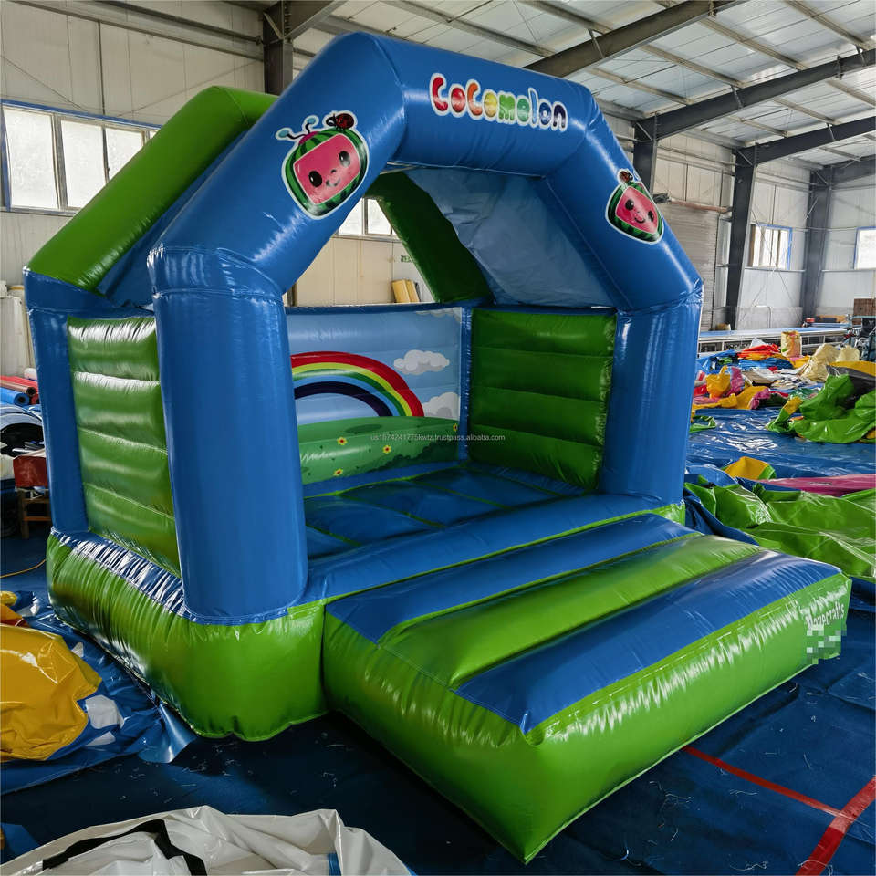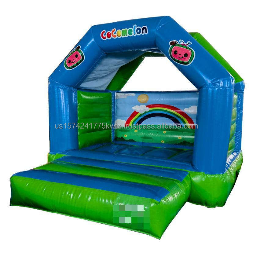Casa de rebote inflable con estampado de arcoíris de PVC personalizado con tipo de castillo hinchable para saltar y rebotar logotipo divertido gratis