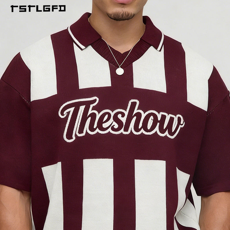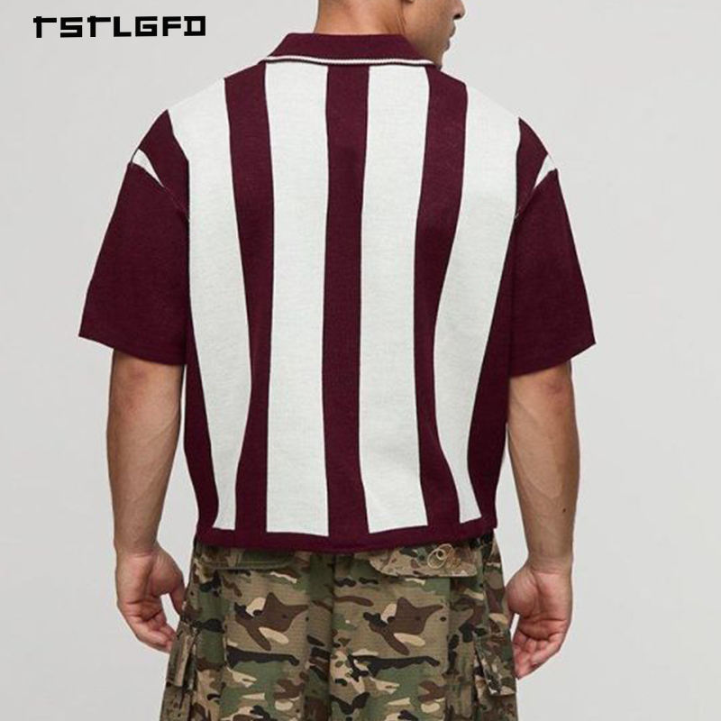 Camisetas Polo Personalizadas de Algodón Grueso de Primera Calidad, con Rayas Verticales, Manga Corta, Cuello en V, Color Borgoña