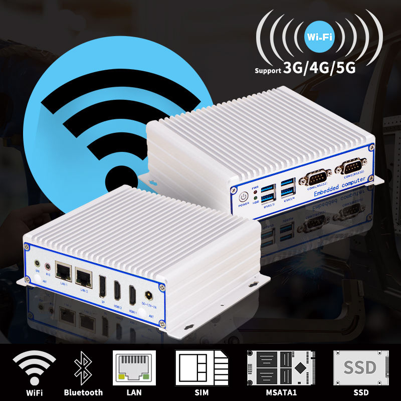Personalización Quad Core DC 12V Industrial Mini PC Intel I3/i5/i7 Computadora sin ventilador con interfaces de E/S ricas