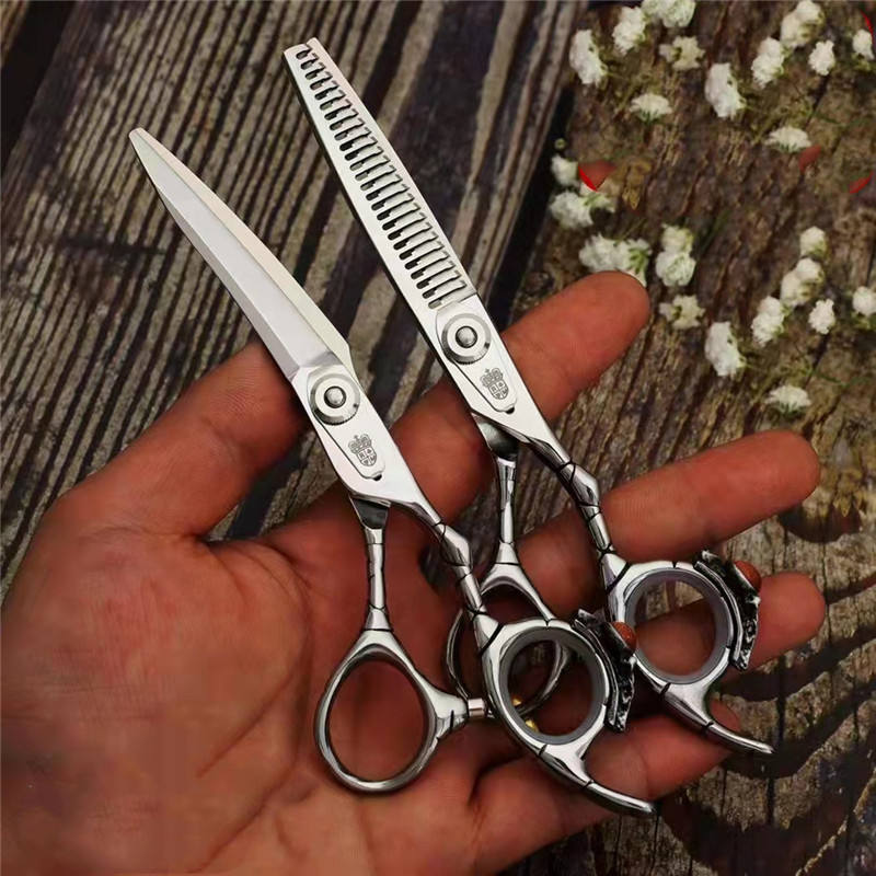 Tijeras de Peluquería Personalizables de 6 Pulgadas, Tijeras de Entresacar Planas de Acero Inoxidable 440C para Uso con Mano Derecha