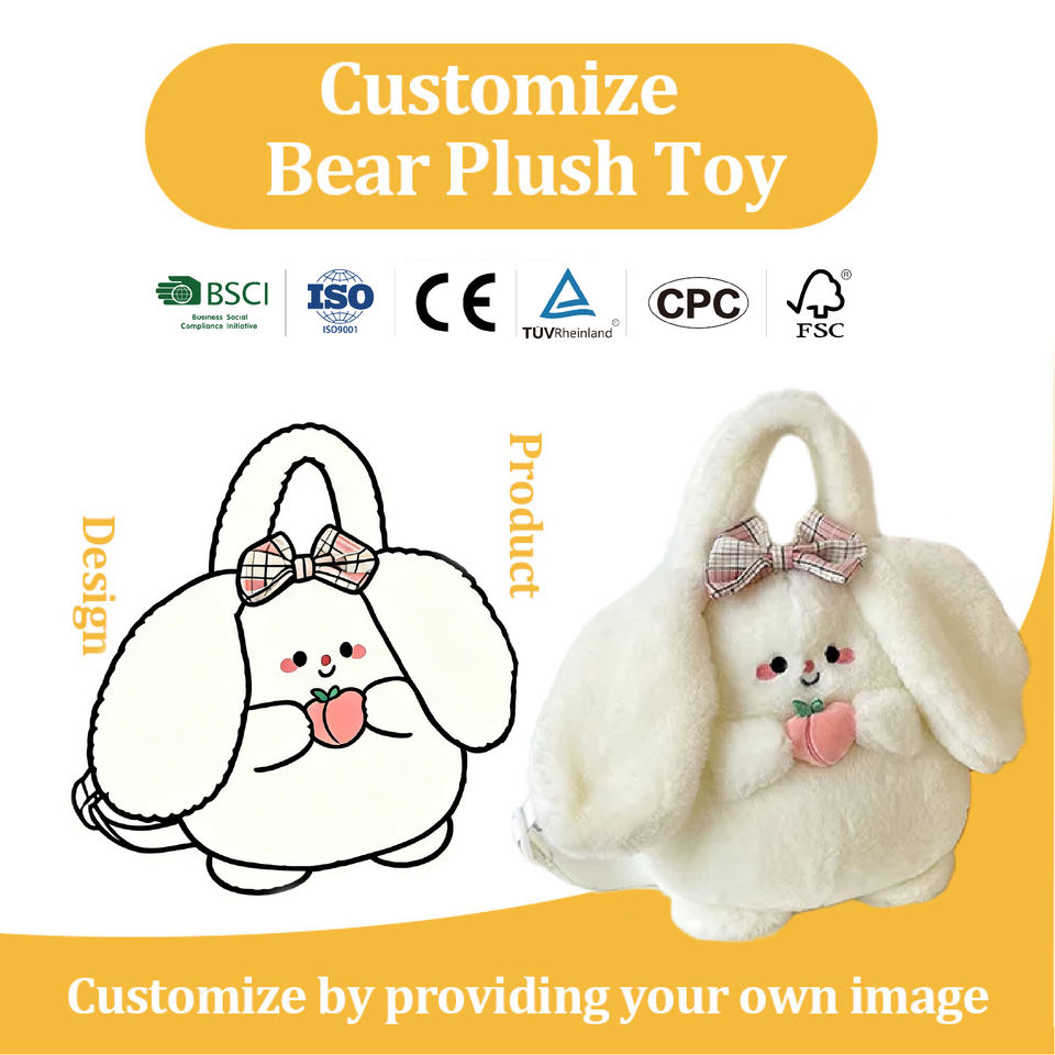 Personalización al por Mayor de Bolsos Cruzados de Peluche con Forma de Conejito de Melocotón, Bolso de Mano de un Solo Hombro, Certificado CE y CPC para Regalo
