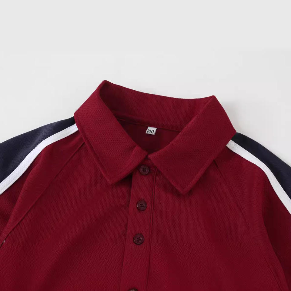 Personalizar 100% poliéster Dry-Fit manga corta 180g Patchwork Color Blocking niños uniforme escolar Polo camiseta para hombres