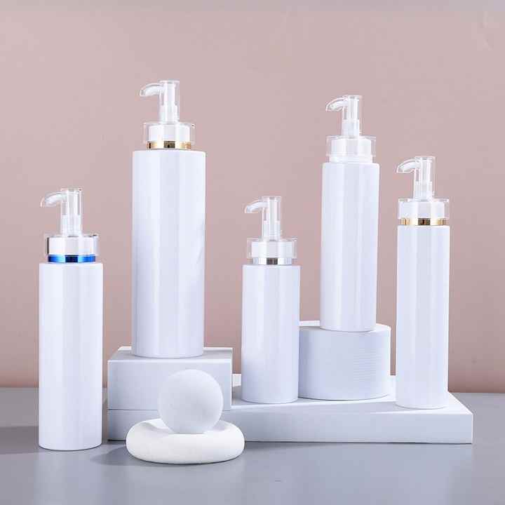 Botella Redonda Personalizable de 200ml, 250ml, 300ml, 400ml para Gel de Ducha y Cosméticos con Bomba Dosificadora para Champú