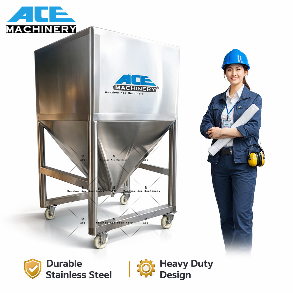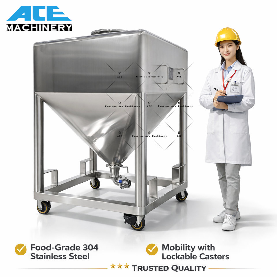 Tanque IBC de Acero Inoxidable en Forma de Cono de 550L/1000L Personalizable, Tanque de Almacenamiento de Polvo de Grado Alimenticio