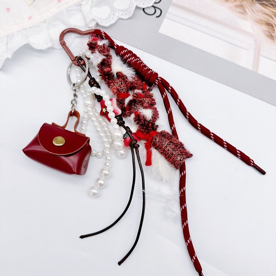 Llaveros Personalizables para Coche de Niñas, Accesorios de Ropa, Colgante de Corazón de Aleación de Zinc, Mosquetón, Borla Larga de Encaje, Mini Llaveros para Bolso