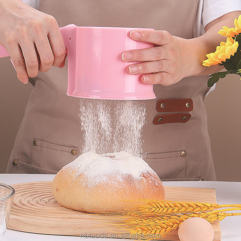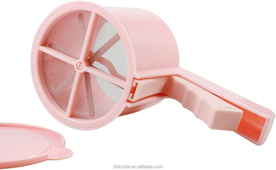 Mini tamiz de harina de plástico sin BPA personalizado, tamiz de harina de mano, colador de malla fina de plástico, colador de cocina, herramienta para hornear