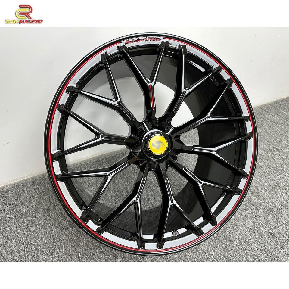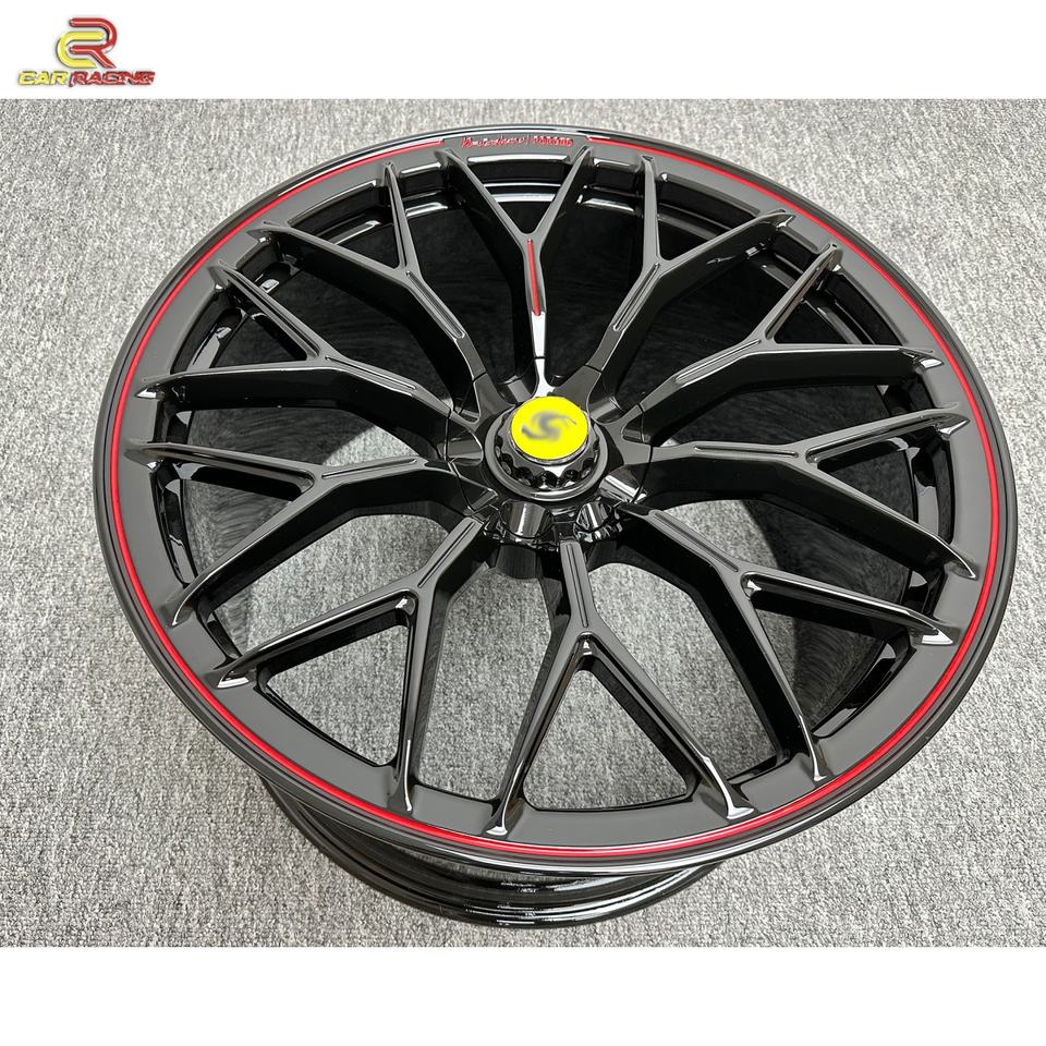 Rines Negros Personalizados con Borde Rojo de Aleación de Aluminio Forjado para Automóvil, de 19, 20, 21, 22 y 23 Pulgadas para Ferrari 488