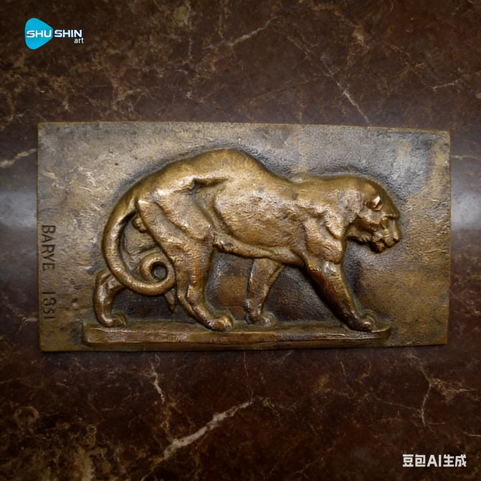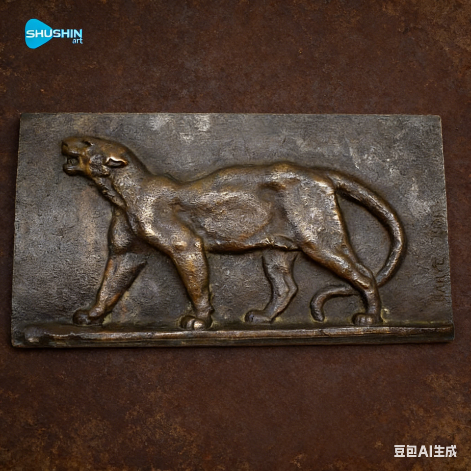 Panel de Bajorrelieve de Bronce con Diseño de León Clásico, Escultura Artística Fundida a Mano para Decoración del Hogar