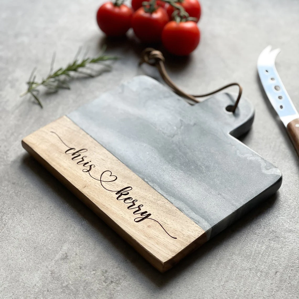 Tabla para cortar de madera de acacia de mármol redondeado hecha a mano con diseño personalizado tabla para cortar queso pizza con asa al por mayor