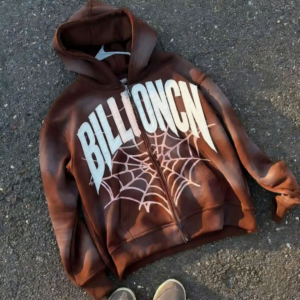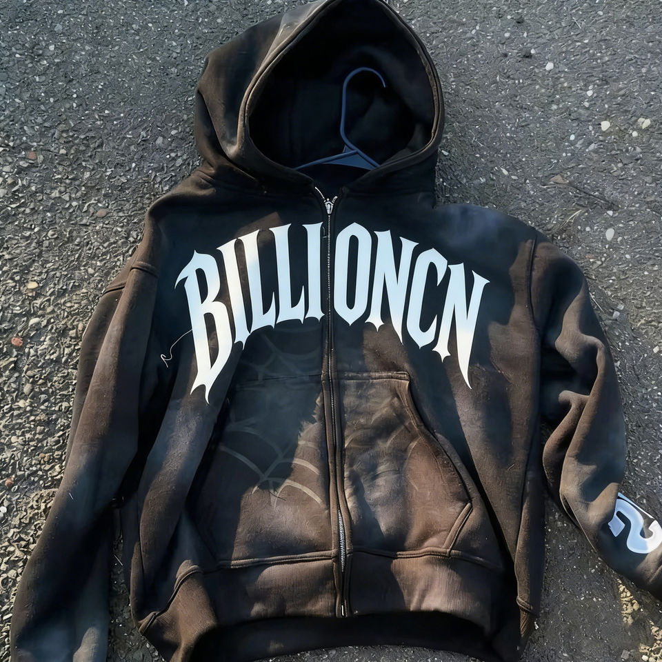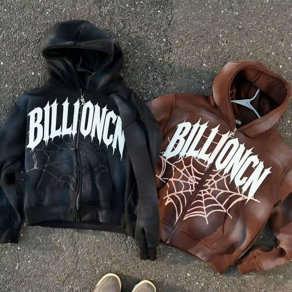 Sudadera con capucha y cremallera, pantalones deportivos acampanados, personalizables, con estampado de patchwork, bordado desgastado, transpirables y con lavado ácido.