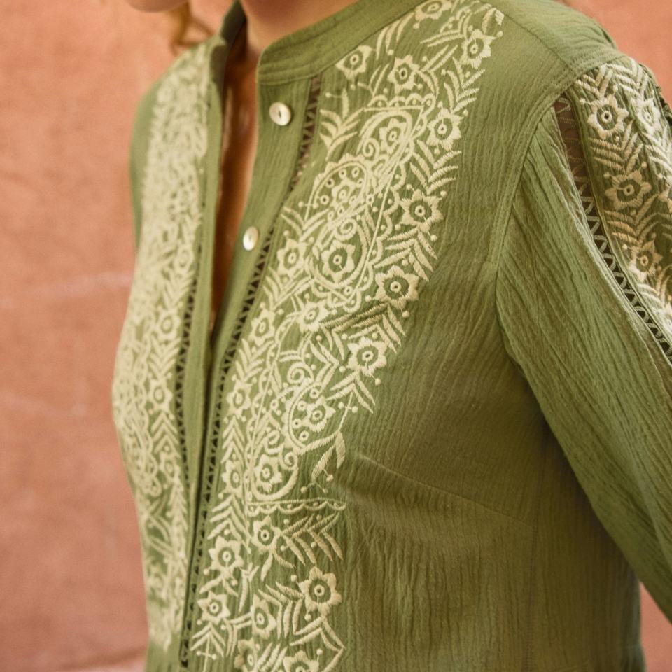 Técnicas:Bordado, Plisado