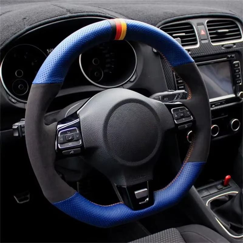 Funda de Volante de Cuero Genuino Personalizada para Volkswagen Golf 6 Mk6 VW Polo Sagitar Bora Santana Jetta MK5, Accesorios Interiores para Auto