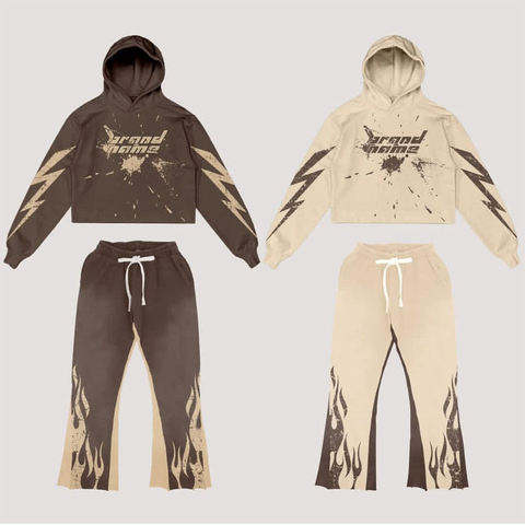 Ropa de calle personalizada, conjunto con estampado gráfico, trajes para correr, chándal personalizado, chándal Unisex, lavado ácido personalizado, 100% algodón con capucha