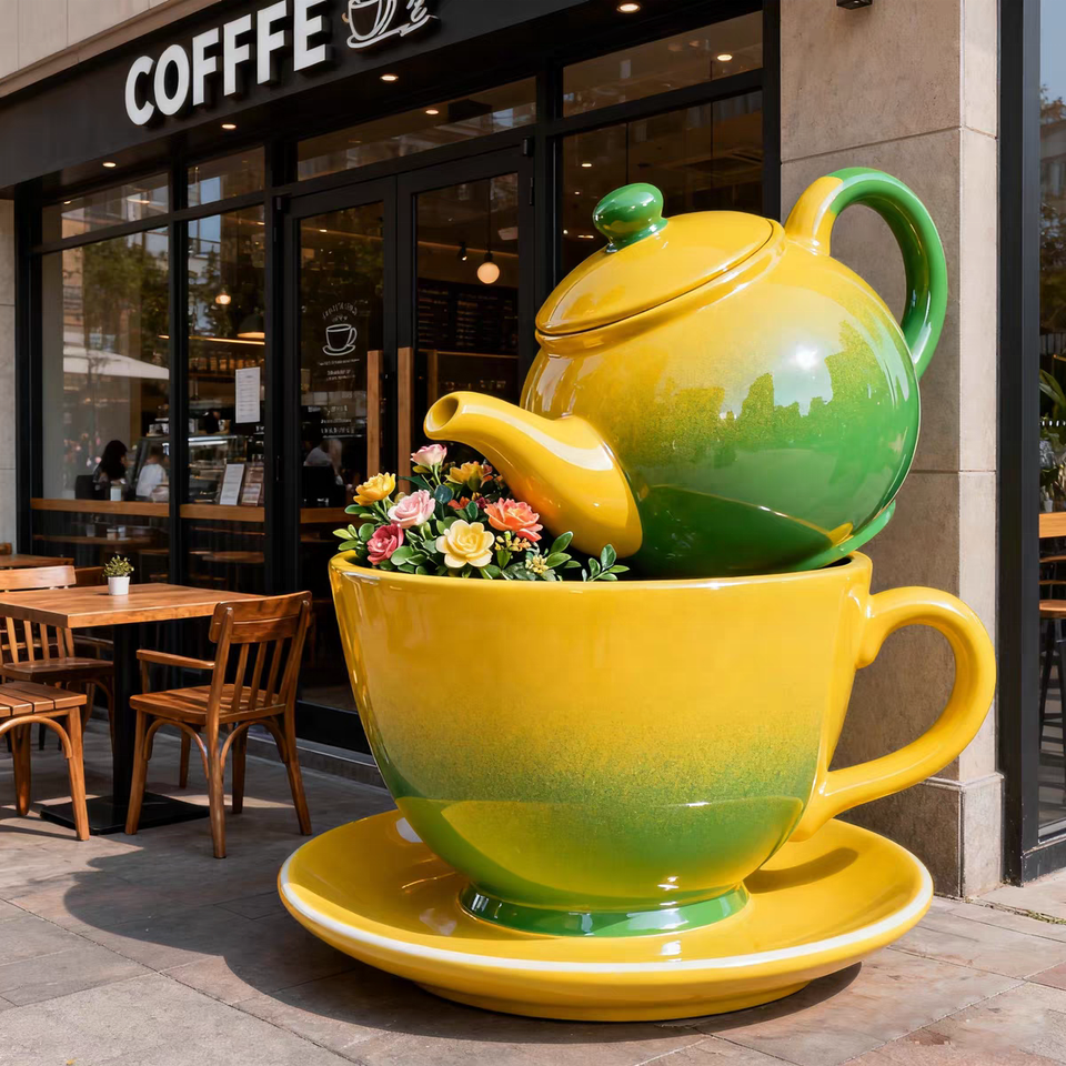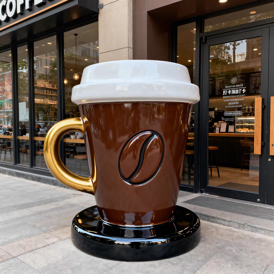 Nombre del producto:Esculturas de tazas de café grandes de fibra de vidrio de resina