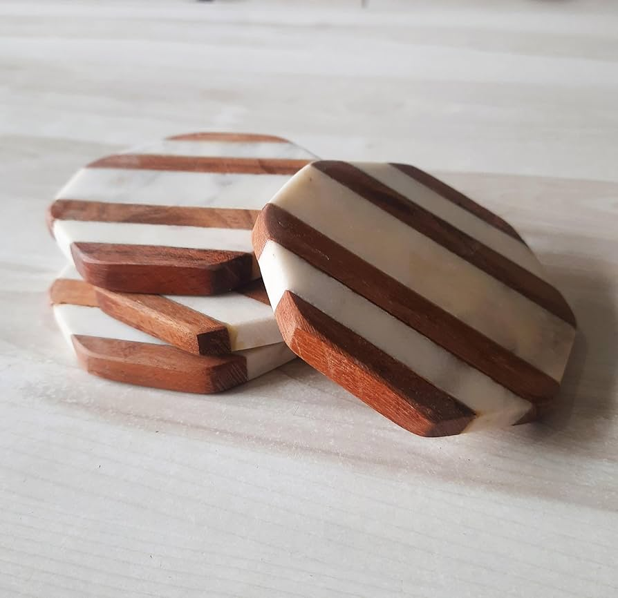 Juego de posavasos de mármol hechos a mano personalizados para sus bebidas, posavasos de mármol con alfombrilla de protección de mesa personalizada
