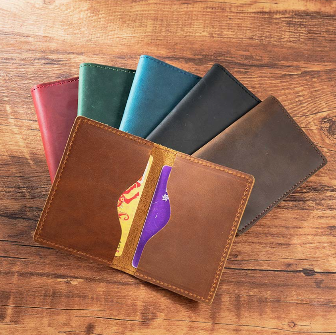 Tarjetero de Cuero Genuino Hecho a Mano Personalizado, Tarjetero de Cuero Crazy Horse de Grano Completo, Monedero para Monedas