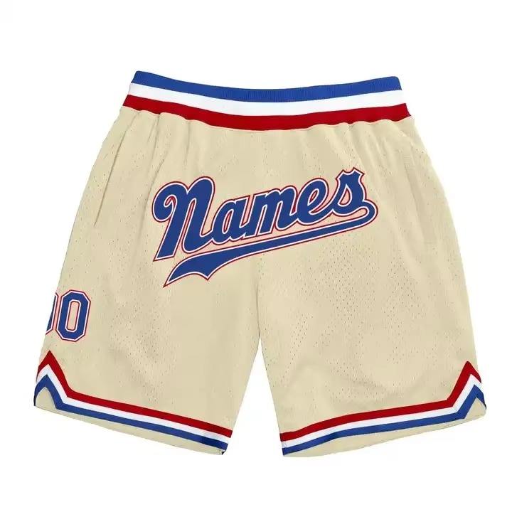 Shorts de malla sublimados con bordado de alta calidad personalizados, ideales para el verano, transpirables, de secado rápido, antibacterianos y decorados.