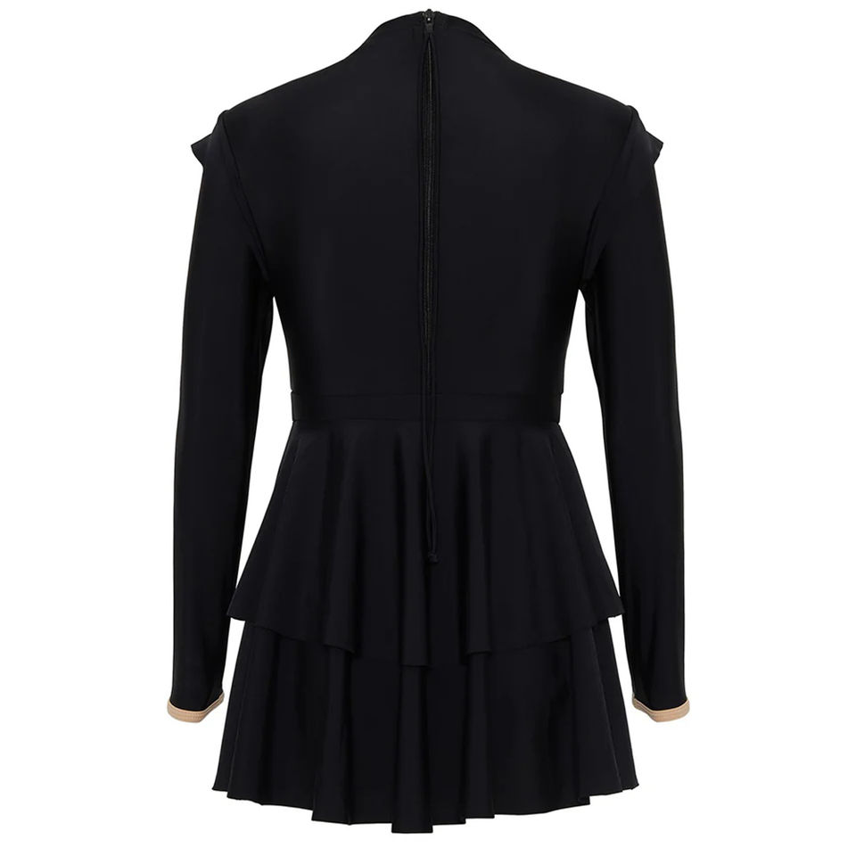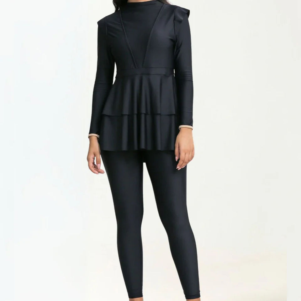 Traje de Baño Islámico Personalizado para Mujer, Modesto, de Poliéster/Nailon, de Dos Piezas, Corte Alto, Top de Baño de Longitud Extendida