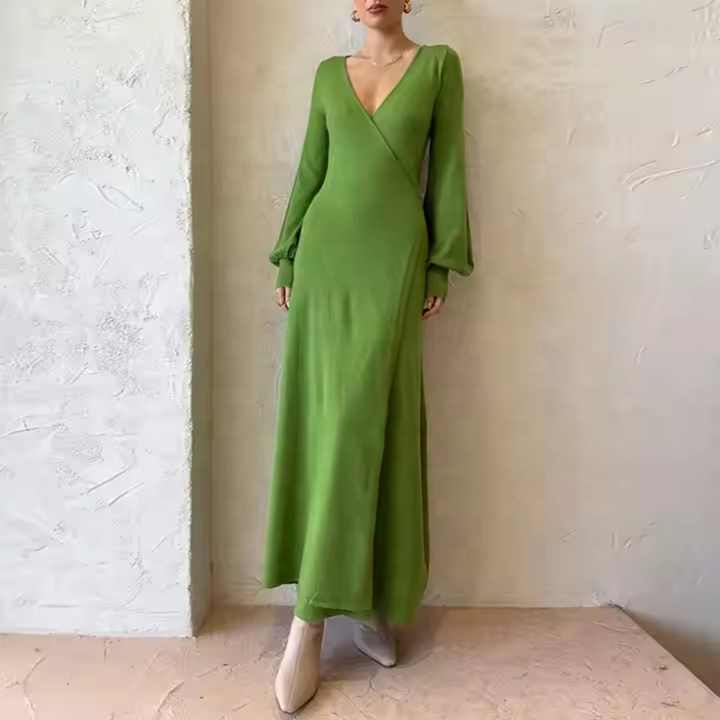 Vestido Formal Personalizado para Mujer, de Gasa Fluida, con Cuello en V Profundo, Corte en A, Largo