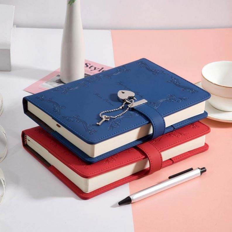 Cuaderno de cuero PU A5 con logotipo personalizado, cuaderno rosa con bolígrafo, diario, libro con cerradura, juego de caja de regalo para material de papelería escolar, cuaderno A5