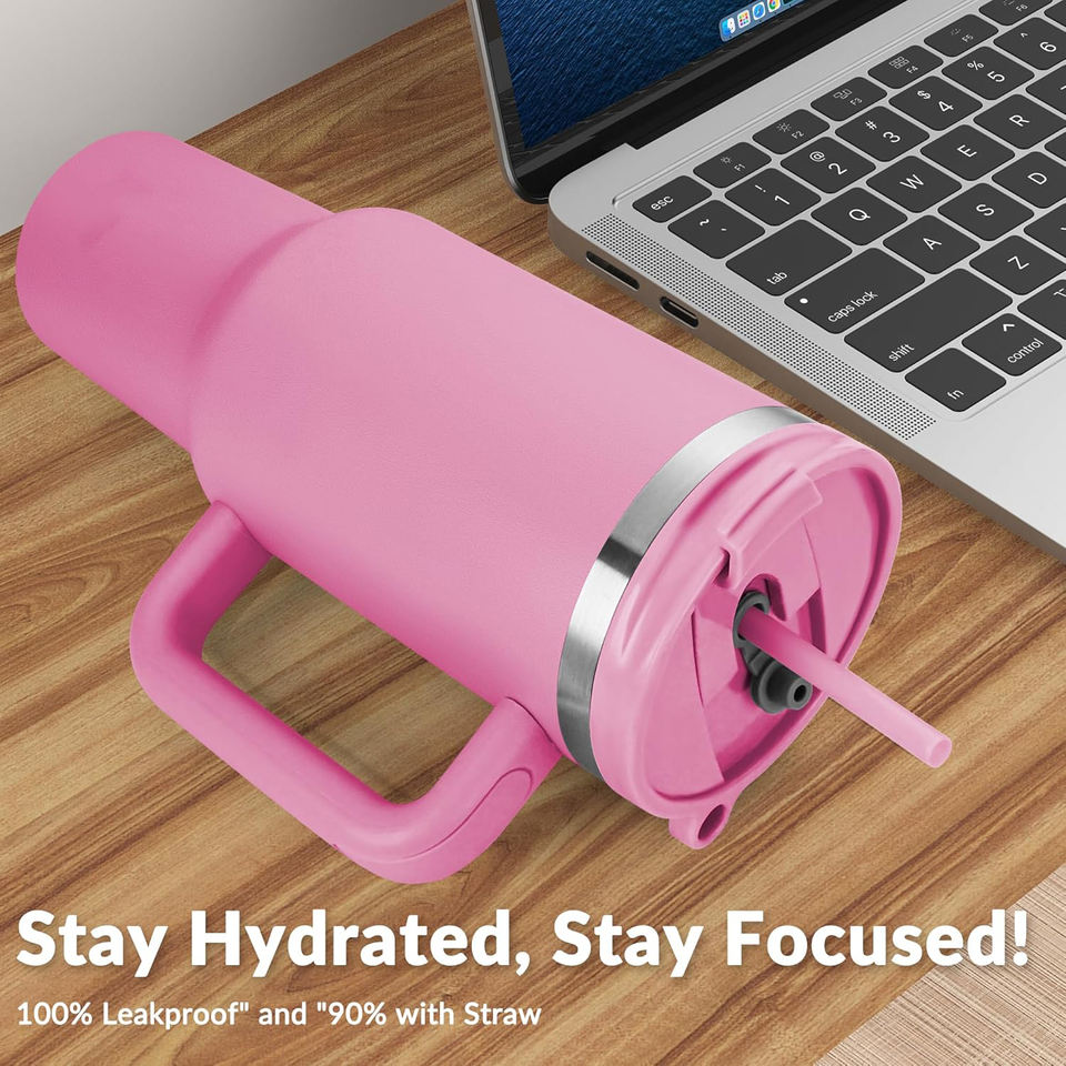 Taza de Aventura Personalizable con Logotipo, Taza de Viaje de Acero Inoxidable de Doble Pared y Aislada de 40 oz con Asa y Pajita