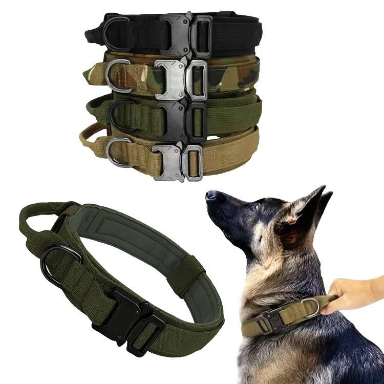 Collar de Adiestramiento con Hebilla Metálica Personalizable con Logotipo y Color para Perros Medianos y Grandes, Conjunto de Collar y Correa Tácticos para Perros