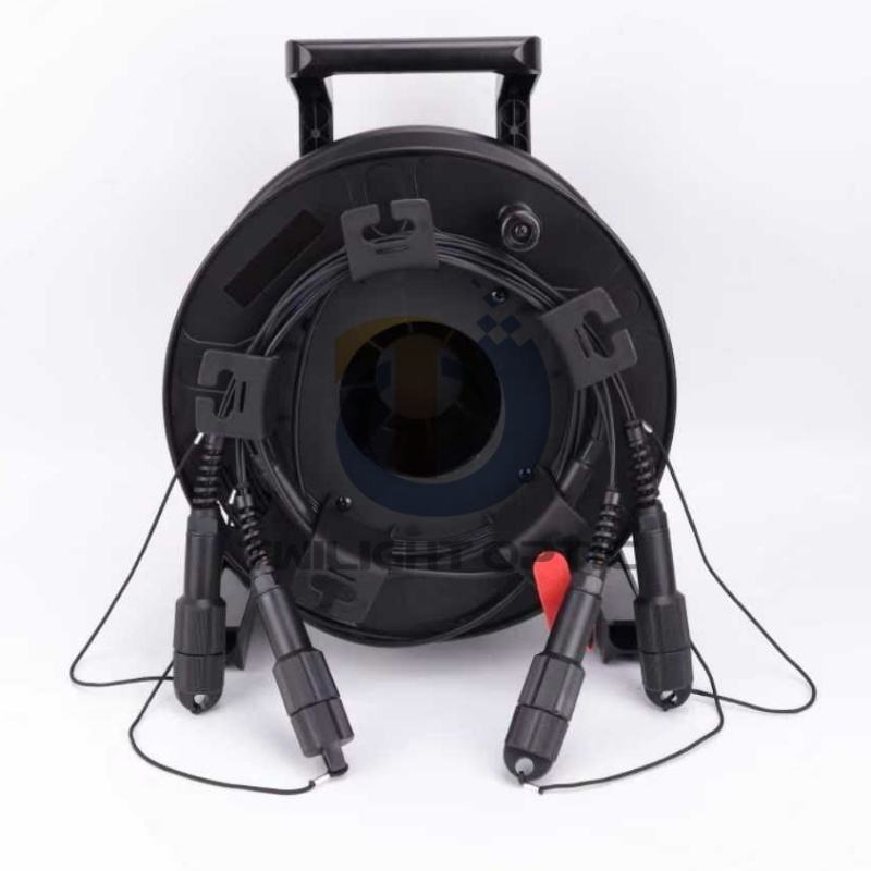 Cable Óptico Blindado Flexible FTTX con Logotipo Personalizado, 8 Fibras, 200m, LC UPC Dúplex a LC UPC Dúplex, 4 Pares, MMF OM3 TPU con Carrete